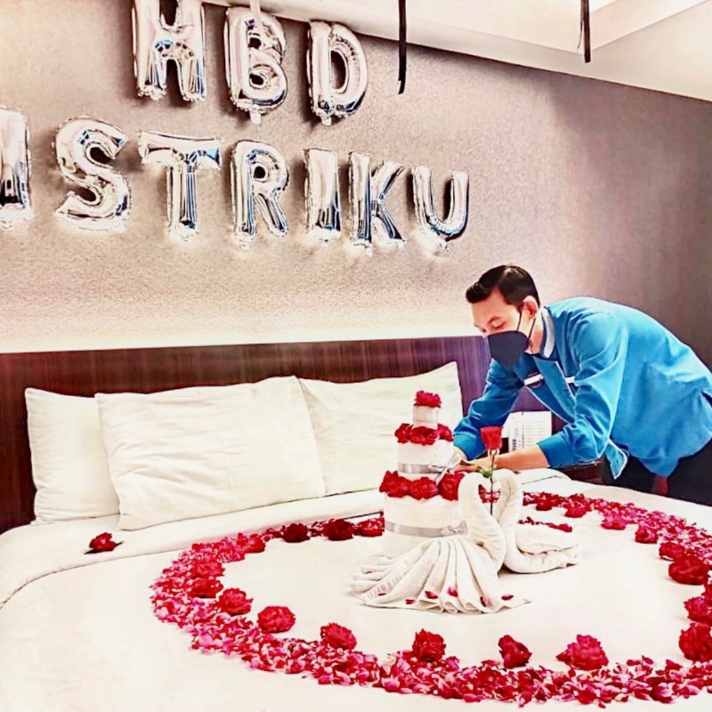 " Yang lebih menarik, anda juga dapat memesan dekorasi romantic spesial di kamar hanya dengan harga mulai dari IDR 350,000. Berbagai promo menarik tersebut dapat dipesan melalui 0812 3281 9998 (WA Chat) atau 0351 447 2222 (Telepon), " jelas Chef Badri.