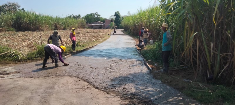 Proses pembangunan rabat beton jalan RT 29, RW 05, Dusun Mantren, Desa Bagi, Kecamatan Madiun, Kabupaten Madiun.