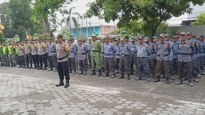 Peserta apel kesiapan Kamtibmas dan Linmas se Kecamatan Jiwan.