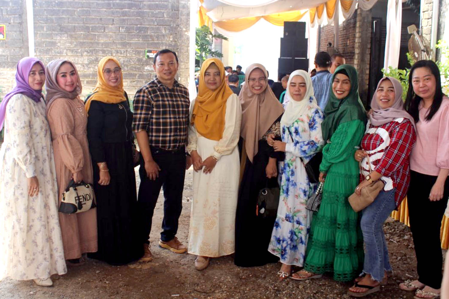 SEMANGAT : Teman-teman dari istri Aguh Setyo Wacono, ST mengabadikan moment dengan berfoto bersama. Mereka saling hadir memberikan dukungan dalam upaya menjaga kekompakan persahabatan.