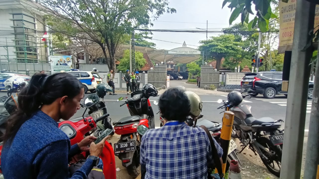 Sejumlah awak media tidak bisa masuk di depan kawasan pondok pesantren Tebuireng