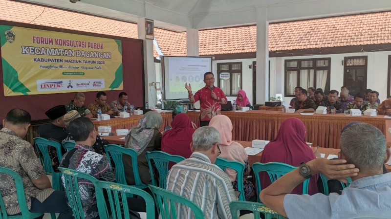 JATIMPOS.CO.KABUPATEN MADIUN – Pemerintah Kecamatan Dagangan, Kabupaten Madiun, menggelar Forum Konsultasi Publik (FGD) untuk meningkatkan mutu standar pelayanan publik di Pendapa Kecamatan Dagangan, Kamis (10/7/2025). Kegiatan ini merupakan bentuk komitmen pemerintah kecamatan dalam memberikan layanan yang cepat, mudah, dan akuntabel kepada masyarakat.