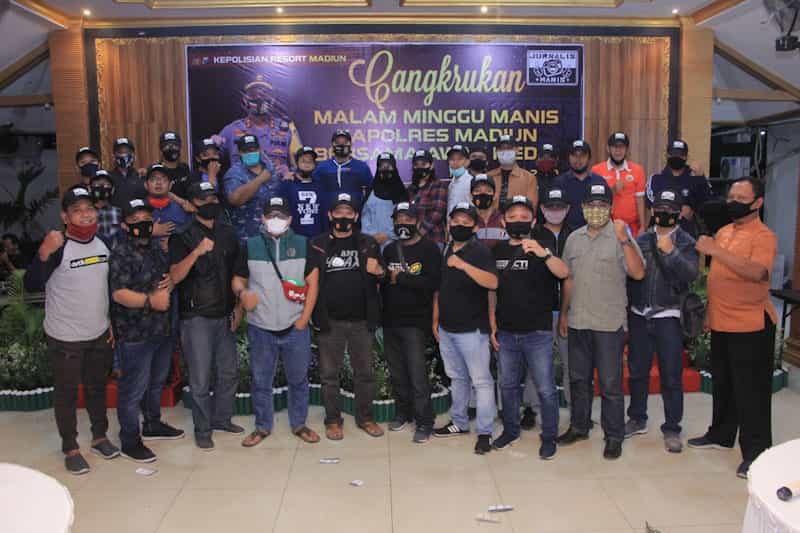 Kapolres Madiun bersama para awak media usai kegiatan cangkrukan malam minggu manis