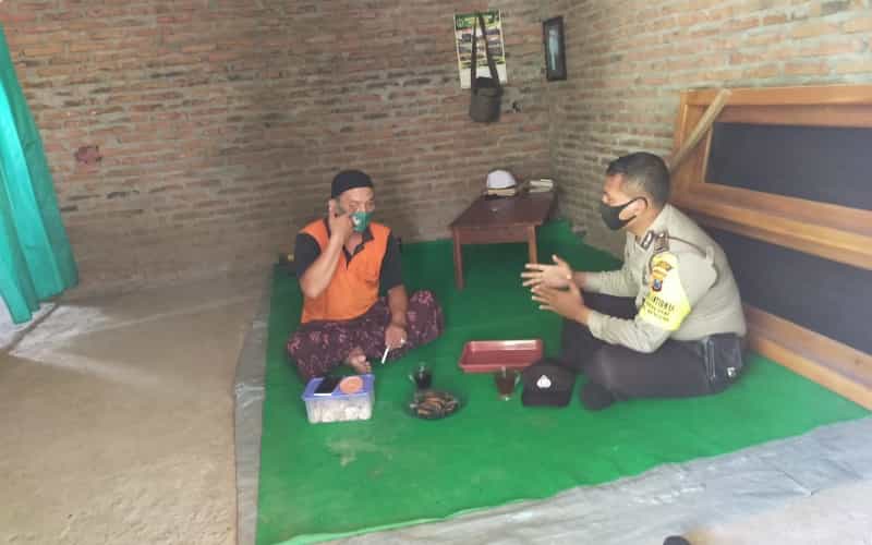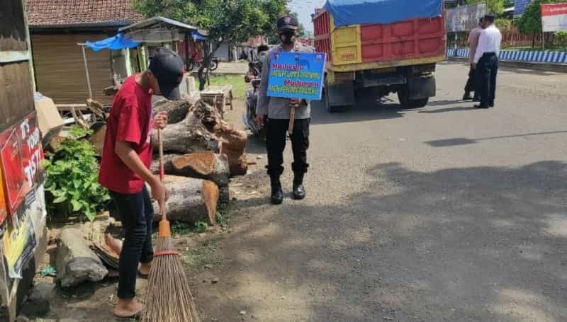 JATIMPOS.CO/KABUPATEN MADIUN – Anggota Polres Madiun, yaitu Bhabinkamtibmas Desa Sumbergandu, Kecamatan Pilangkenceng, Kabupaten Madiun, Bripka Sudarsono mempunyai cara tersendiri untuk menyampaikan imbauan tentang protokol kesehatan.