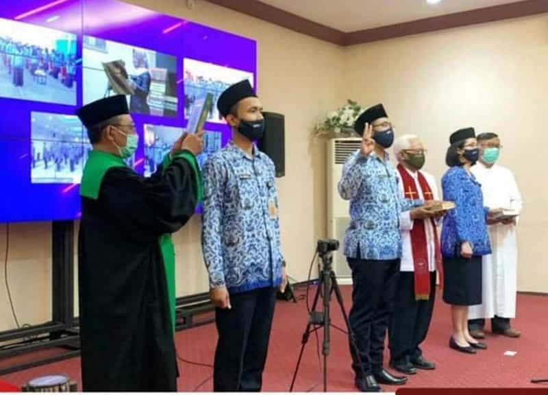 JATIMPOS CO/KOTA MOJOKERTO - Sebanyak 266 orang Pegawai Negeri Sipil (PNS) formasi pengadaan 2018 dilantik oleh Wali Kota Mojokerto Ika Puspitasari yang dilakukan secara daring di Ruang Nusantara Pemkot Mojokerto, Senin (1/9/2020).