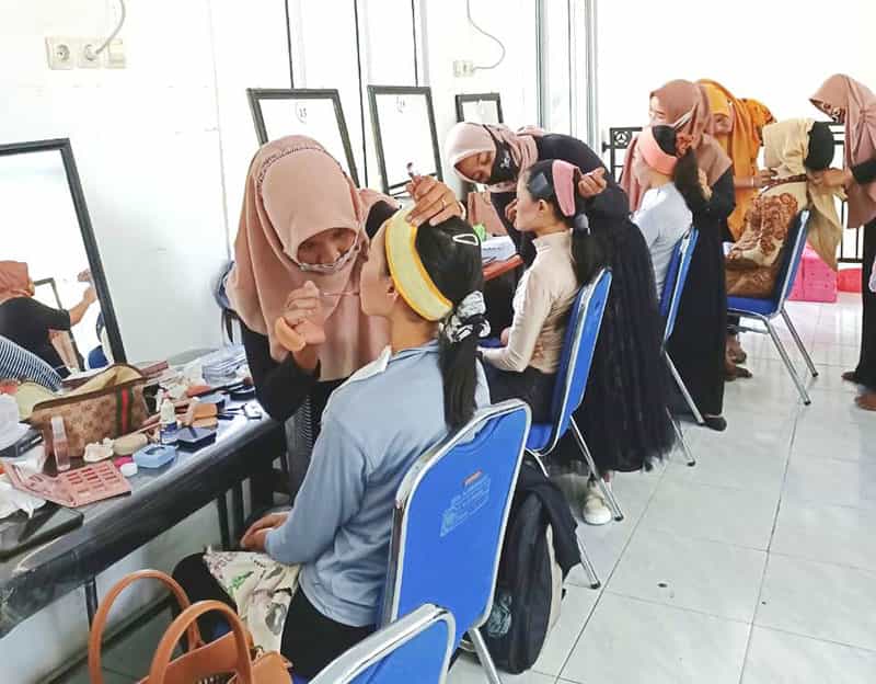 JATIMPOS.CO//LAMONGAN – Dinas Tenaga Kerja (Disnaker) Kabupaten Lamongan memberikan pelatihan kepada warga dan masyarakat. Kali ini bersama Lembaga Pelatihan Kerja (LPK) Tidar memberikan pelatihan tata rias pengantin dengan tema pengantin muslim.
