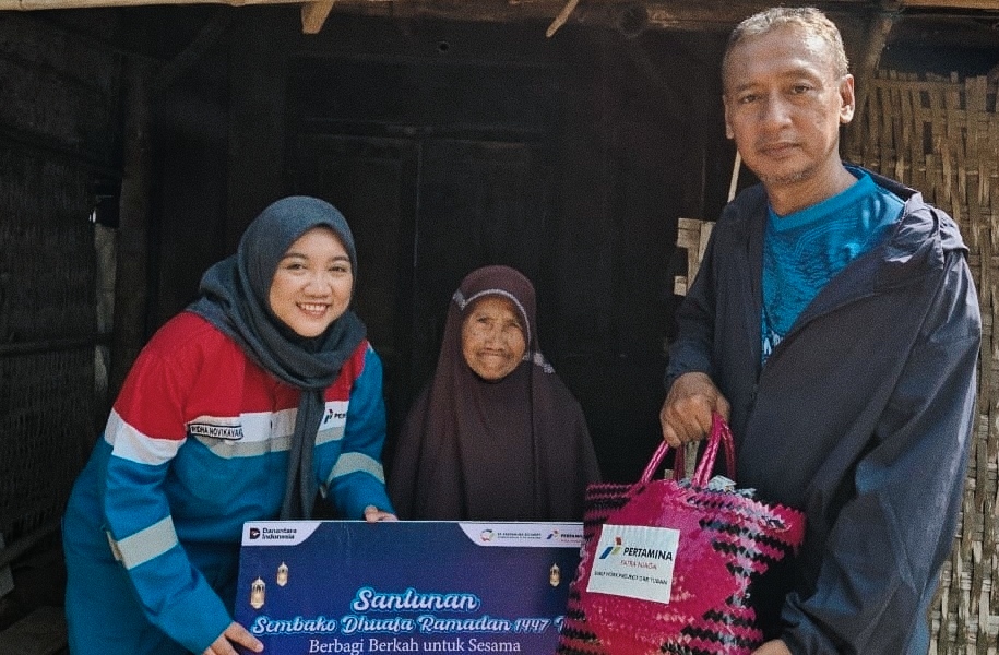 JATIMPOS.CO/TUBAN - Project Early Work (EW) GRR Tuban, PT Pertamina Patra Niaga menyalurkan 950 paket sembako ke warga di Desa Wadung, Sumurgeneng, Rawasan, Mentoso, Kaliuntu, dan Desa Beji, Kecamatan Jenu, Tuhan. Demikian ini bentuk komitmen mendukung pengembangan masyarakat sekitar area Proyek GRR Tuban.