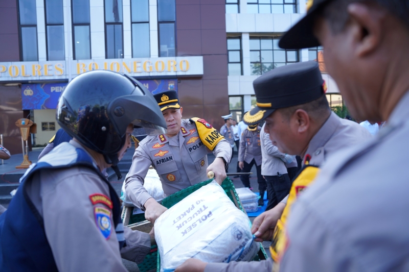 Polres Bojonegoro Bagikan Zakat Fitrah kepada Masyarakat Jelang Lebaran