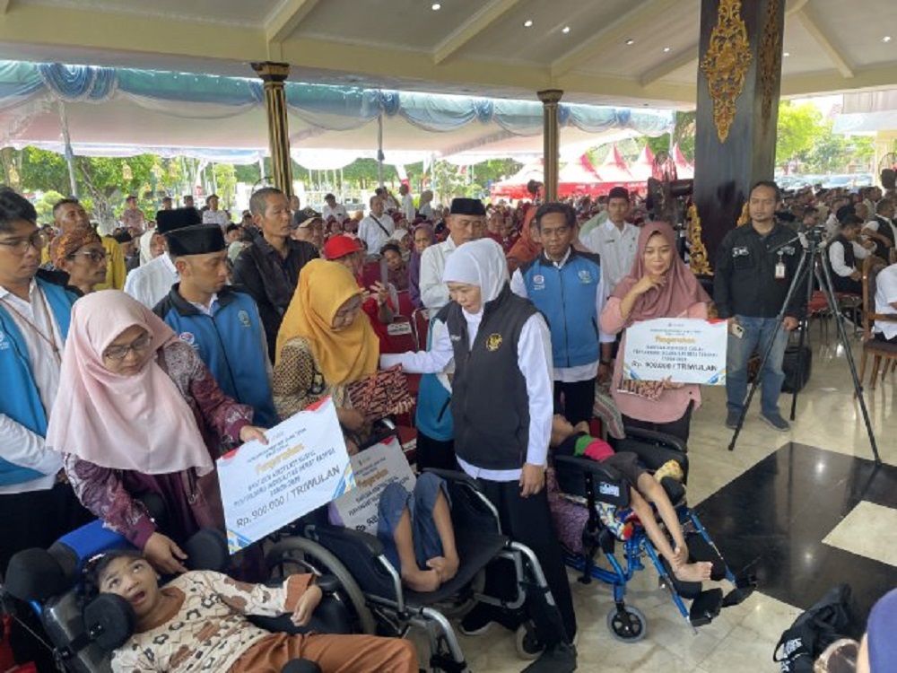 JATIMPOS.CO/JOMBANG - Dalam semangat berbagi di bulan suci Ramadhan, Pemerintah Provinsi (Pemprov) Jawa Timur melalui Dinas Sosial memperkuat perlindungan sosial sekaligus pemberdayaan ekonomi masyarakat lewat kegiatan Sapa Bansos Amaliah Ramadhan, di Pendopo Kabupaten Jombang, Rabu (11/3/2026).