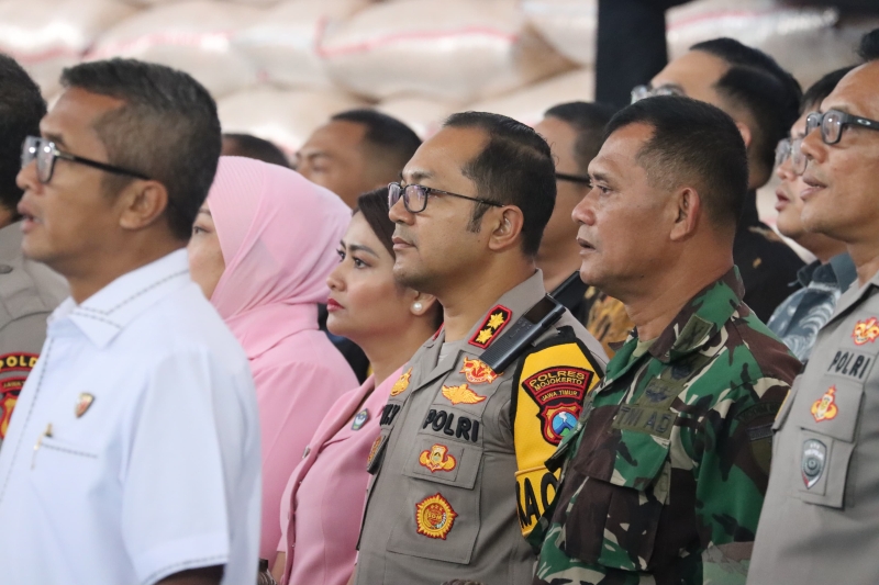 AKBP Afrian Satya Permadi didampingi sejumlah pejabat utama Polres Bojonegoro, yakni Kasat Lantas AKP Satria Dwi Aryanto, Kasat Reskrim AKP Cipto Dwi Leksana, dan Kasat Binmas AKP Fatkur Rahman.