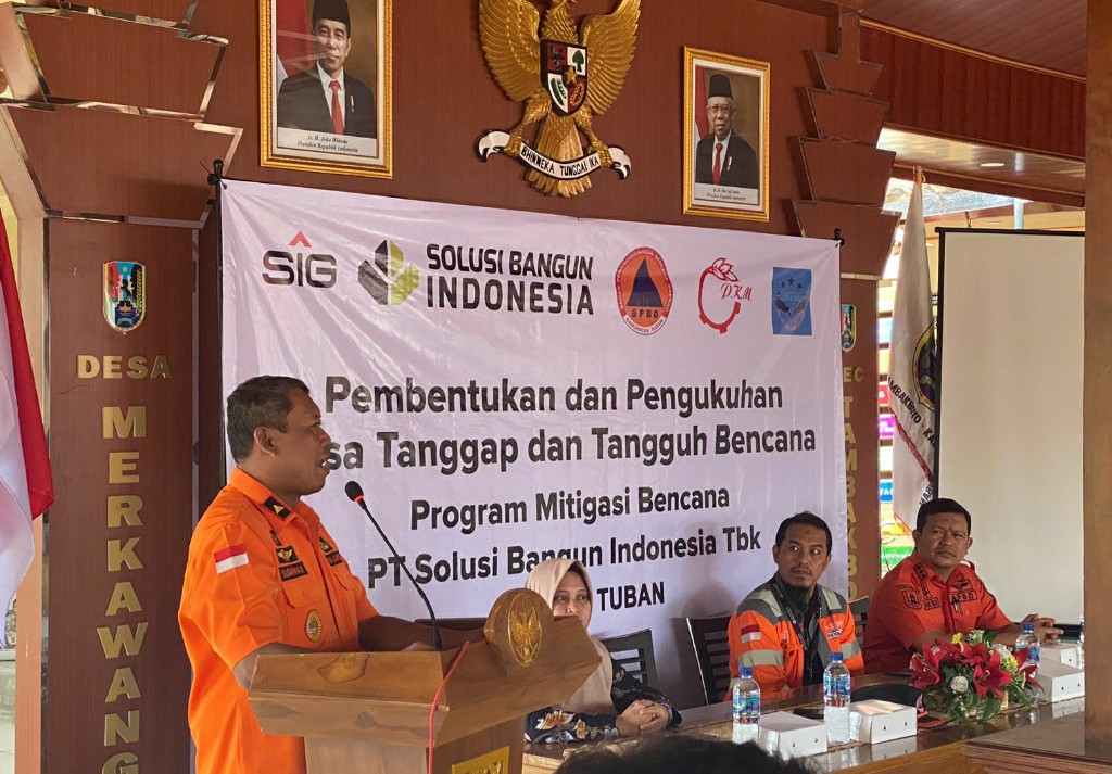 JATIMPOS.CO/TUBAN - PT Solusi Bangun Indonesia Tbk (SBI) Pabrik Tuban bekerjasama dengan Badan Penanggulangan Bencana Daerah (BPBD) Kabupaten Tuban membentuk dan mengukuhkan Desa Tangguh Bencana (DESTANA) selama 10 hingga 12 Agustus 2023.