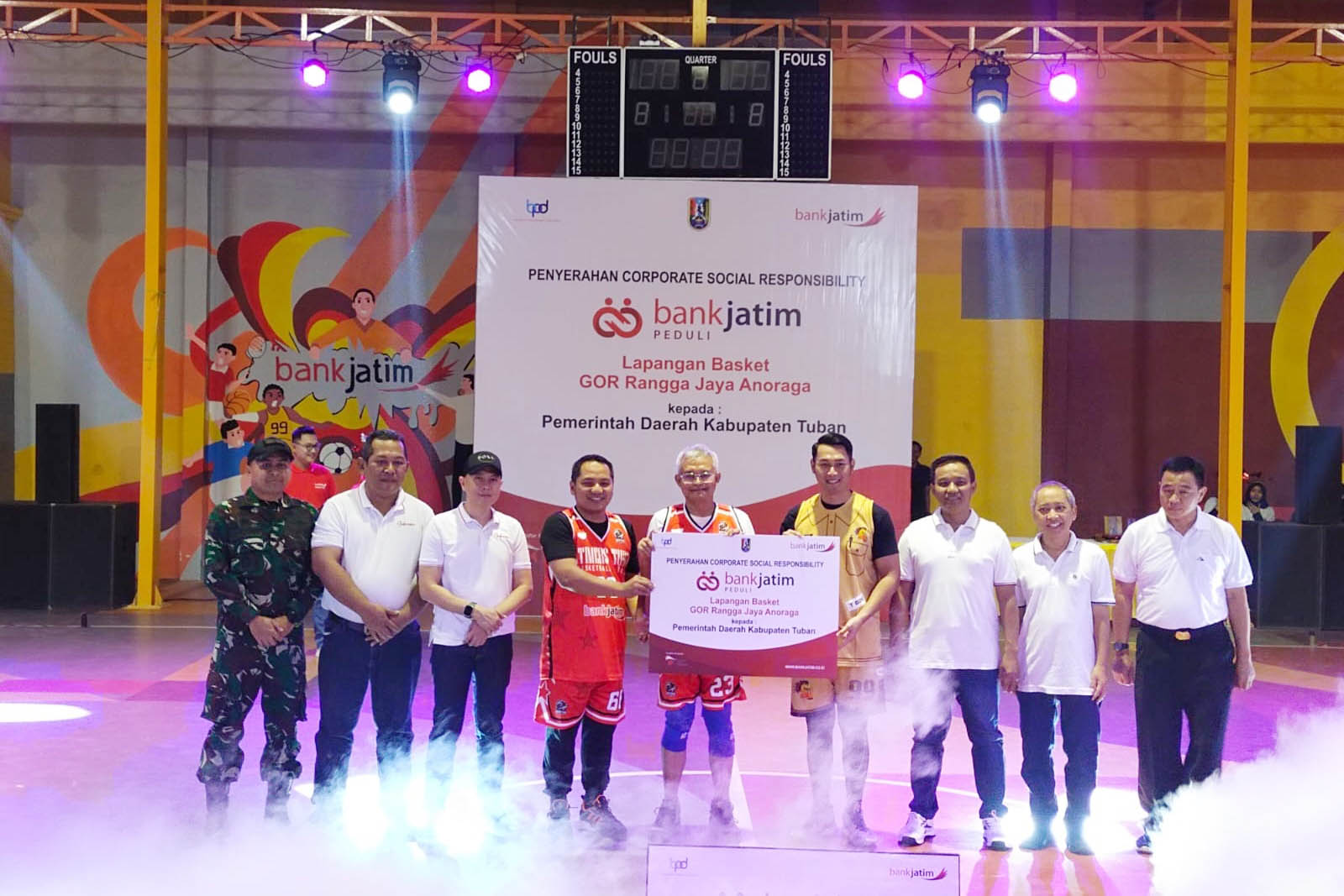 JATIMPOS.CO/TUBAN – Selesainya pembangunan lapangan basket di lingkungan Gelanggang Olahraga (GOR) Rangga Jaya Anoraga resmi diserahkan. Secara simbolis Direktur IT & Digital Bank Jatim, Zulhelfi Abidin menyerahkan kepada Bupati Tuban, Aditya Halindra Faridzky yang dibangun dari dana Corporate Social Responsibility (CSR) Bank Jatim.