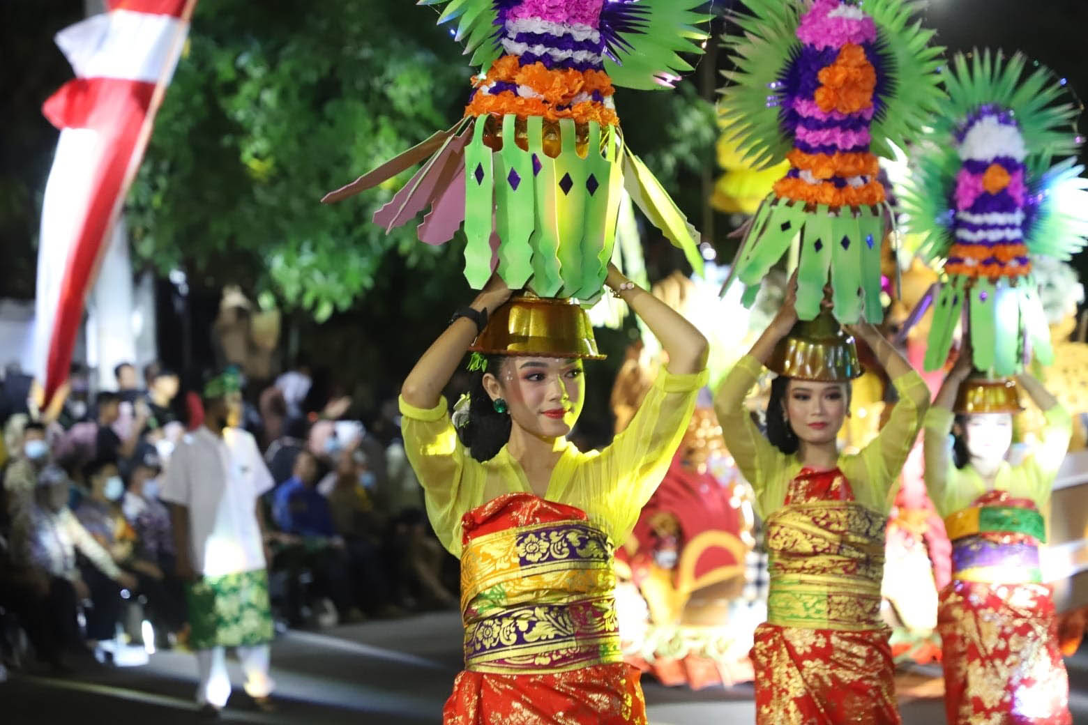 JATIMPOS.CO/TUBAN - Tuban Specta Night Carnival berlangsung spektakuler. Acara pada weekend kemarin diawali dengan pertunjukan marching band dan kembang api. Sebanyak 50 regu parade seni budaya menampilkan karya Nusantara.