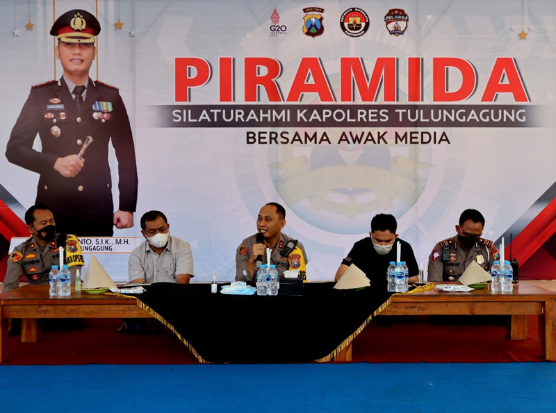 JATIMPOS.CO/TULUNGAGUNG - Kapolres Tulungagung AKBP Eko Hartanto bersilaturahmi dengan awak media. Acara bertajuk Piramida ini dihelat di salah satu warung kopi, tepatnya di Kawasan Pinka, Kelurahan Kuthoanyar. Kabupaten Tulungagung, Selasa (19/7/2022).