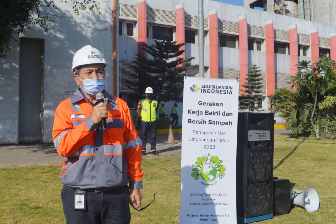 JATIMPOS.CO/TUBAN - PT Solusi Bangun Indonesia Tbk (SBI) Pabrik Tuban memperingati Hari Lingkungan Hidup 2022. Ditandai dengan bersih sampah dan tanam pohon wujud perusahaan peduli terhadap kelestarian alam.