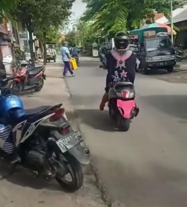 JATIMPOS.CO/LAMONGAN – Diduga karena ingin menghindari plat nomor sepeda motornya terdeteksi oleh kamera ETLE, Seorang emak-emak menutup plat nomornya menggunakan celana dalam (CD) viral di medsos.