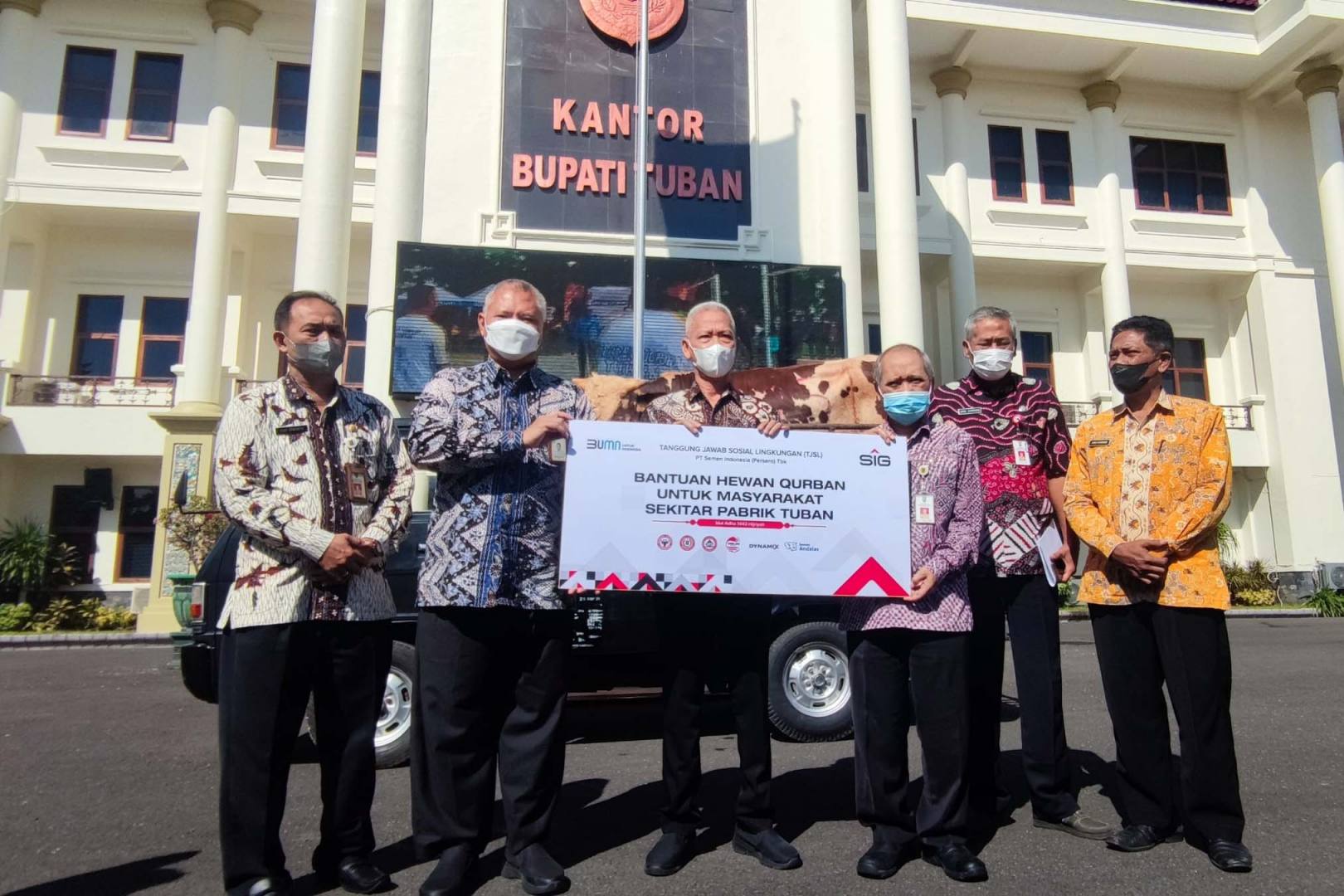 JATIMPOS.CO/TUBAN – PT Semen Indonesia (Persero) Tbk (SIG) Ghopo Tuban menyalurkan bantuan 39 ekor sapi kurban. Jumlah ini dibagi di wilayah desa binaan pabrik dan komponen pemerintahan daerah.