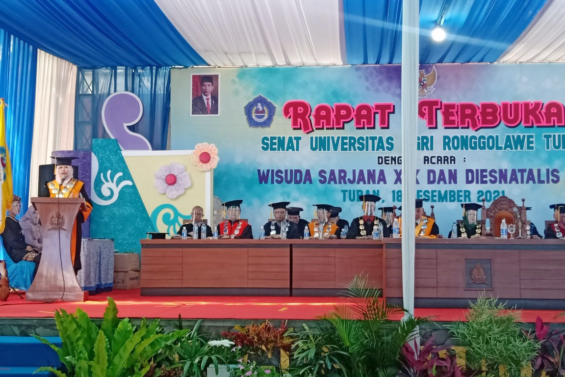JATIMPOS.CO/TUBAN – Sebanyak 364 mahasiswa dari Universitas PGRI Ronggolawe (UNIROW) Tuban diwisuda. Acara Wisuda Sarjana ke-XIX dan Diesnatalis ke-XIV digelar di Panggung Budaya Unirow Tuban, Sabtu (18/12).