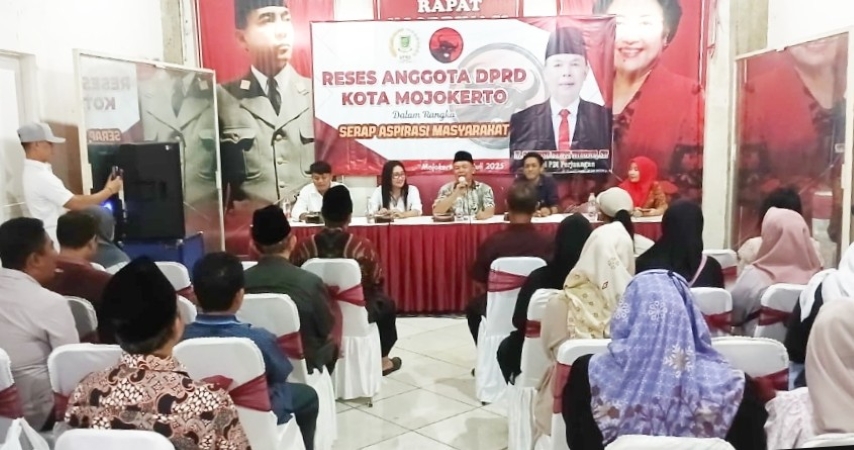 JATIMPOS. CO/ KOTA MOJOKERTO, - Anggota DPRD Kota Mojokerto dari Fraksi PDI Perjuangan, Santoso Bekti Wibowo, menggelar kegiatan reses di Posko Rumah Aspirasi PDIP Kota Mojokerto yang berlokasi di Jalan Benteng Pancasila, Kecamatan Magersari, Sabtu (19/7/2025).