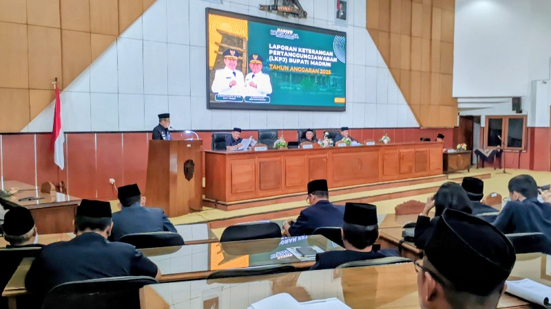 Dalam pemaparannya, Bupati Madiun Hari Wuryanto menyampaikan capaian penyelenggaraan pemerintahan daerah selama satu tahun, mulai dari pengelolaan keuangan, pelaksanaan program dan kegiatan, kebijakan strategis, tindak lanjut rekomendasi DPRD, hingga pelaksanaan tugas pembantuan.