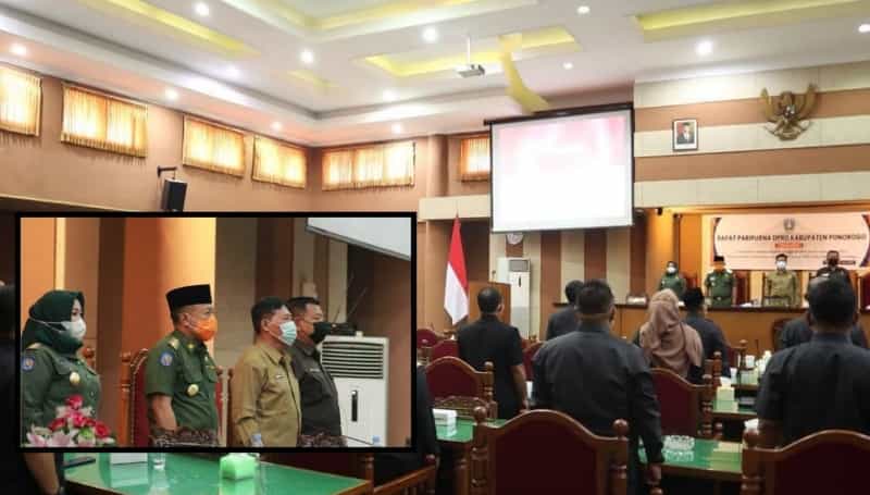 Rapat paripurna dipimpin oleh Wakil Ketua DPRD Kabupaten Ponorogo Dwi Agus Prayitno itu digelar di Lantai 3 Ruang Paripurna Gedung DPRD Kabupaten Ponorogo, Senin (12/4/2021).