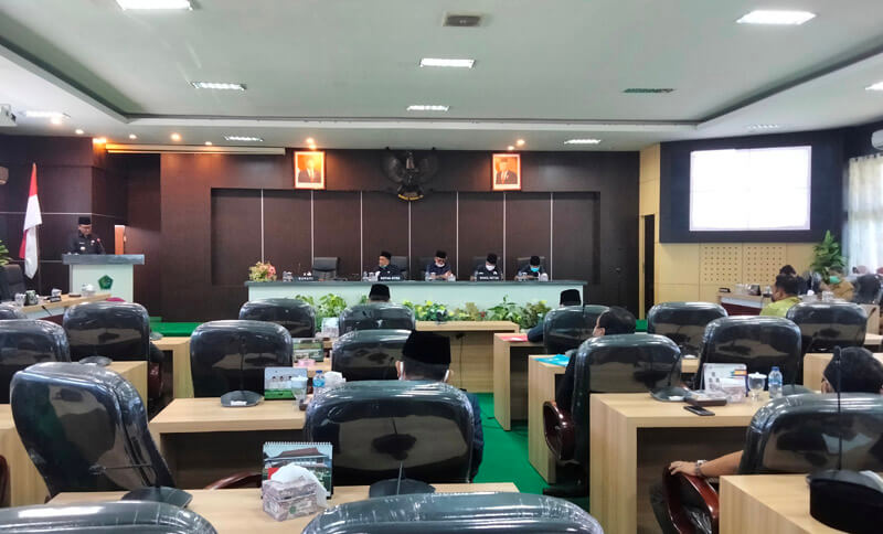 Rapat Paripurna yang dipimpin langsung oleh Ketua DPRD Pamekasan, Fathorrahman membahas perihal penyampaian nota penjelasan Bupati Pamekasan mengenai Raperda pertanggungjawaban pelaksanaan APBD 2020.