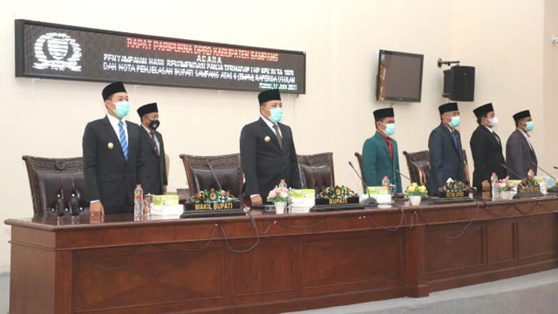 JATIMPOSS.CO//SAMPANG- Dewan Perwakilan Rakyat Daerah (DPRD) Kabupaten Sampang gelar rapat paripurna dengan agenda penyampaian rekomendasi Panitia Kerja (Panja) terhadap Laporan Hasil Pemeriksaan BPK RI tahun anggaran 2020 dan Nota Penjelasan Bupati Sampang atas 6 Rancangan Peraturan Daerah (Raperda) usulan, Kamis (17/6/2021).