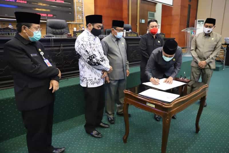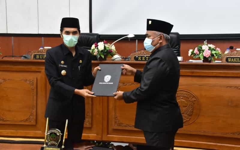 JATIMPOS.CO/TULUNGAGUNG - Dewan Perwakilan Rakyat Daerah (DPRD) Kabupaten Tulungagung mengesahkan Rancangan Peraturan Daerah (Ranperda) APBD Tahun 2021 menjadi Peraturan Daerah (Perda) pada rapat paripurna yang digelar di ruang rapat Graha Wicaksana lantai 2 Kantor DPRD Kabupaten Tulungagung, Sabtu (28/11/2020).