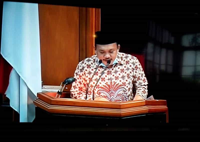 JATIMPOS.CO//BANYUWANGI - Bupati Banyuwangi Abdullah Azwar Anas menyampaikan penjelasannya terhadap pandangan umum (PU) fraksi-fraksi DPRD atas diajukannya Raperda Anggaran Pendapatan dan Belanja Daerah (APBD) Kabupaten Banyuwangi tahun anggaran 2021. Penjelasan tersebut disampaikan dalam Rapat Paripurna virtual yang dipimpin Wakil Ketua DPRD Banyuwangi Ruliyono, Rabu (25/11/2020).
