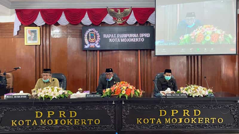 JATIMPOS.CO/KOTA MOJOKERTO - Dewan Perwakilan Rakyat Daerah (DPRD) Kota Mojokerto  Gelar Rapat Paripurna , dengan agenda utama menyetujui Anggaran Pendapatan dan Belanja Daerah (APBD)  Kota Mojokerto tahun anggaran 2021. Di ruang Sidang DPRD Kota Mojokerto, Senin (23/11/2020).