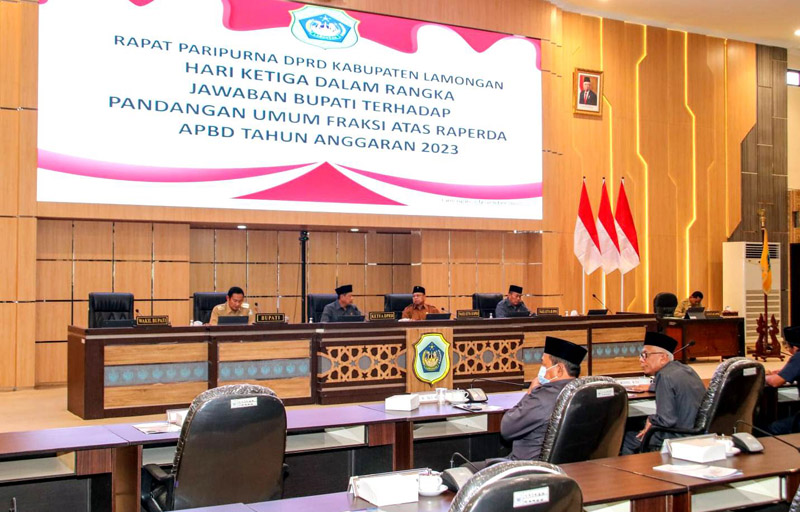 JATIMPOS.CO/LAMONGAN - Anggaran Pendapatan dan Belanja Daerah (APBD) Kabupaten Lamongan 2023 telah disetujui pada rapat Paripurna DPRD Kabupaten Lamongan, di Ruang Rapat Paripurna DPRD Kabupaten Lamongan, Senin (21/11/2022).