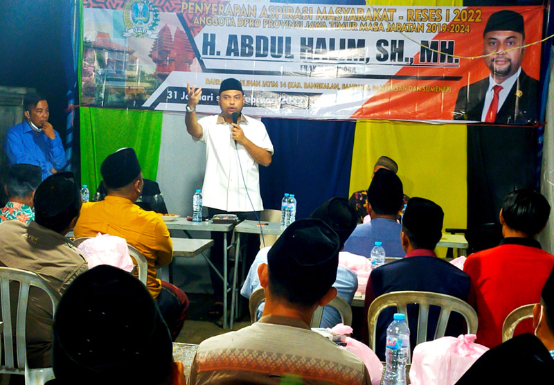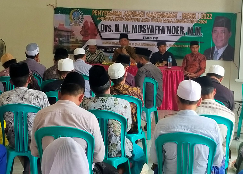 JATIMPOS.CO/SAMPANG – Anggota Dewan Perwakilan Rakyat Daerah (DPRD) Provinsi Jawa Timur, Drs. H. M. Musyaffa’ Noer, MM menggelar serap aspirasi atau Reses di Desa Jelgung, Kecamatan Robatal, Kabupaten Sampang, pada Kamis, (1/2/22). Kegiatan itu dikemas dengan sosialisasi Undang-Undang Pesantren dan dialog interaktif bersama warga.