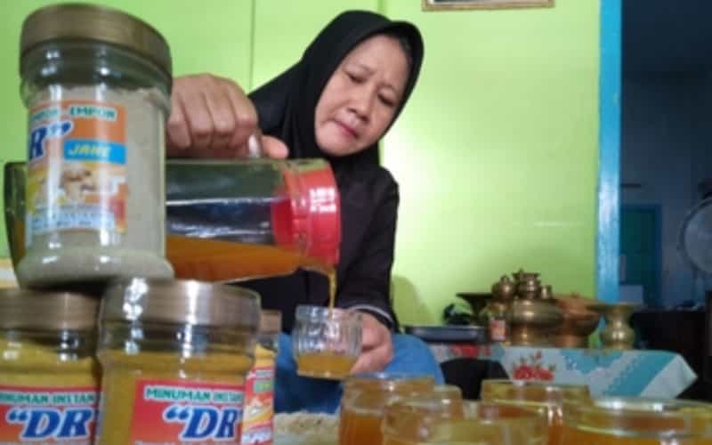 Salah seorang produsen sambel pecel di Kota Madiun beralih profesi menjadi jamu tradisional yang dikemas dalam bentuk bubuk instan. (Foto Diskominfo).