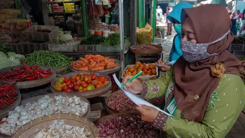 Tim Satgas Pangan Kabupaten Madiun memantau harga bahan pokok di Pasar Pagotan.
