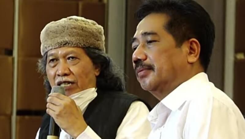 Sinau bareng, Cak Nun (kiri) bersama pakar komunikasi Unair Suko Widodo (kanan) dalam kegiatan sosialisasi cukai di Kota Madiun.