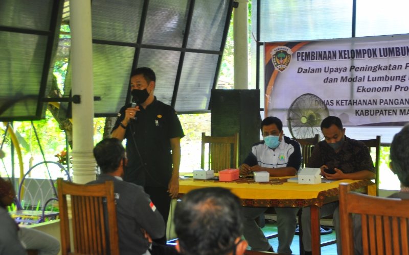 Kabid Ketersediaan dan Distribusi Pangan, DKPP Kabupaten Madiun, Tjahyo Sukmono Djati, SE. MM memberikan pengarahan kepada LPM di RM Kampoeng Sawah Balerejo, Kabupaten Madiun.