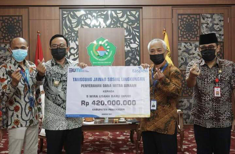 JATIMPOS.CO/PAMEKASAN - Dinas Ketahanan Pangan dan Pertanian (DKPP) Kabupaten Pamekasan menyerahkan bantuan berupa 20 paket mesin rajang kepada kelompok tani (Poktan) di Balai Penyuluhan Pertanian, Desa Sumedangan, Kecamatan Pademawu, Pamekasan, Madura, Jawa Timur, Senin (6/9/2021).