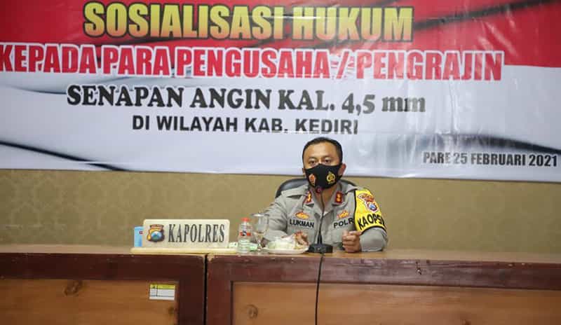 Portal Berita Jawa Timur JATIMPOS.CO/KEDIRI - Polres Kediri melakukan pendataan dan sosialisasi kepada para pengrajin senapan angin. Kegiatan itu dilaksanakan di aula Jana Nuraga Mapolres Kediri, Jumat (26/2/2021).