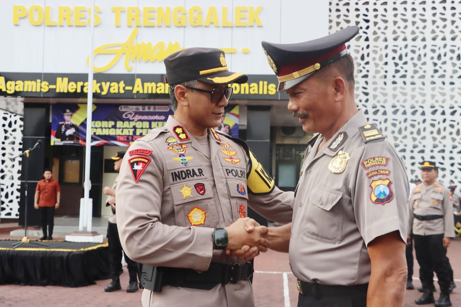 JATIMPOS.CO/TRENGGALEK - Satu lagi anggota Polres Trenggalek menerima anugerah istimewa. Iptu Suparno yang menjabat sebagai Ka SPKT Polres Trenggalek menerima anugerah kenaikan pangkat pengabdian setingkat lebih tinggi menjadi Ajun Komisaris Polisi (AKP).