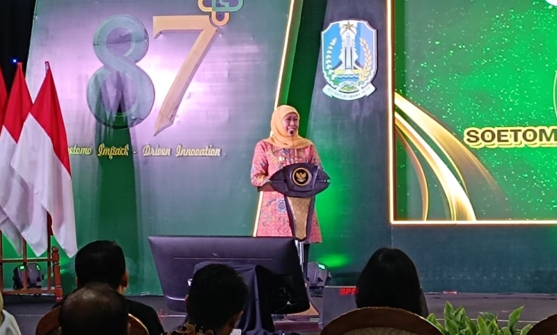 Khofifah mengingatkan pentingnya kesiapan SDM menghadapi lompatan teknologi, termasuk kecerdasan buatan.