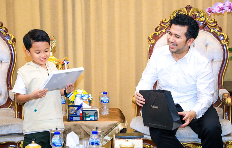 JATIMPOS.CO/BOJONEGORO- Pelaksana Tugas (Plt) Gubernur Jawa Timur Emil Elestianto Dardak bertemu Anak Ajaib Parama Hansa Abhipraya juara dunia Olimpiade Matematika di usia 7 tahun berhasil mengharumkan nama Indonesia di tingkat nasional.