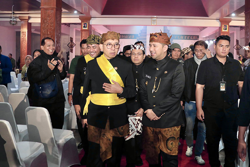 JATIMPOS.CO/PROBOLINGGO- Pelaksana Tugas (Plt.) Gubernur Jawa Timur Emil Elestianto Dardak mendampingi Menteri Kebudayaan RI Fadli Zon menghadiri resepsi Sembah Kasada Bhumi Hila-Hila Tengger dalam rangkaian Yadnya Kasada tahun 2025 di Pendopo Agung Desa Ngadisari, Sukapura, Kabupaten Probolinggo (10/6) malam.
