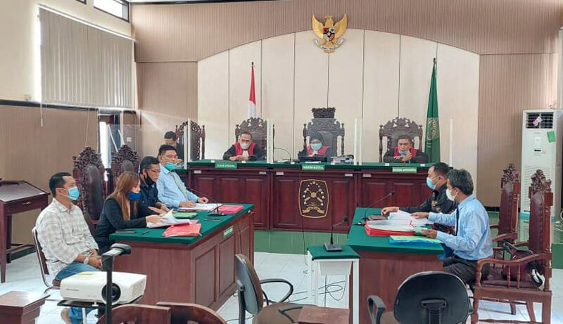 JATIMPOS.CO/NGANJUK - Muhamad Burhanul Karim Direktur CV Adhi Djojo dan Mulyadi Komisaris CV CV Adhi Djojo merasa lega setelah majelis hakim Pengadilan Negeri Kabupaten Kediri mengumumkan amar putusannya, Selasa (8/6/2021).