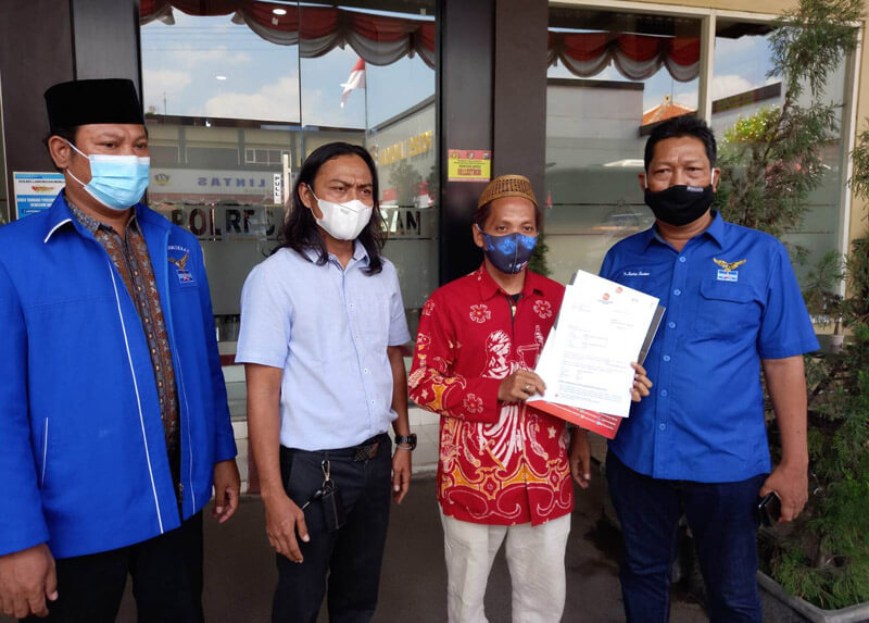 JATIMPOS.CO/LAMONGAN - Wakil Sekretaris DPC Partai Demokrat Lamongan, Sugeng Santoso beserta sejumlah kader Partai Demokrat Lamongan melaporkan pemilik akun Facebook atas nama Faqih Harianto ke Mapolres Lamongan, Selasa (24/08/2021).