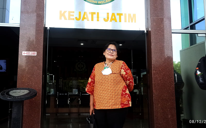 JATIMPOS.CO//KOTA MALANG- Linda Sibarani, seorang pensiunan aparatur sipil negara (ASN) Dinas Perhubungan Kota Malang bersama penasehat hukum Febri Andi Anggoro mendatangi Kejaksaan Tinggi Jatim di Surabaya (8/12/2022).