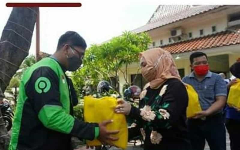 Wali Kota Mojokerto saat bagikan sembako pada Driver Ojol