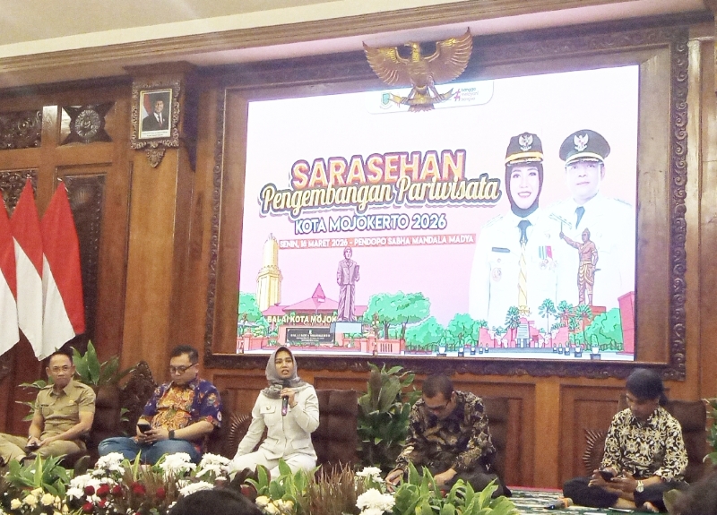 Upaya tersebut disampaikan Wali Kota Mojokerto Ika Puspitasari saat menghadiri kegiatan Sarasehan Pengembangan Pariwisata yang diikuti oleh Gus Yuk Mojokerto dan puluhaan wartawan, digelar di Ruang Sabha Mandala Madya, Balai Kota Mojokerto, Senin (16/3/2026).