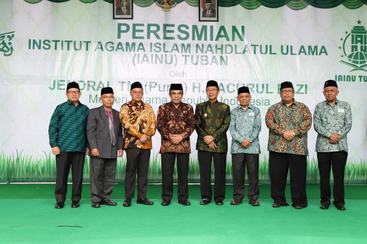 JATIMPOS.CO/TUBAN - Menteri Agama Republik Indonesia, Jenderal TNI (Purn) Fachrul Rozi meresmikan perubahan nama Sekolah Tinggi Ilmu Tarbiyah Makhdum Ibrahim (STITMA) Tuban menjadi Institut Agama Islam Nahdlatul Ulama (IAINU) Tuban, Jum’at (14/02).