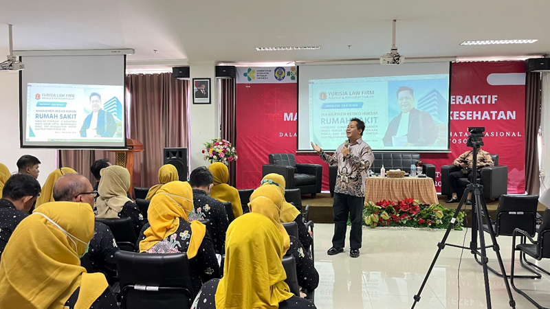 Pantauan dilokasi kegiatan seminar dan dialog interaktif ini dimulai pada pukul 08.00 WIB dengan tema “Manajemen Risiko Hukum Kesehatan” menghadirkan narasumber dari Yurisia Lawfirm, yaitu Anang hartoyo, SH, MH dan Supriadi, SH.