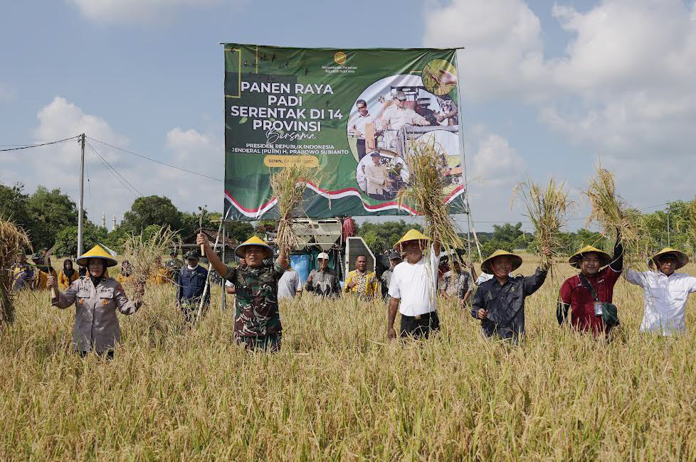 Pada kesempatan panen raya padi serentak bersama Presiden ini hadir juga Forkopimda Tuban, Bulog, Gapoktan dan anggotanya. (min)